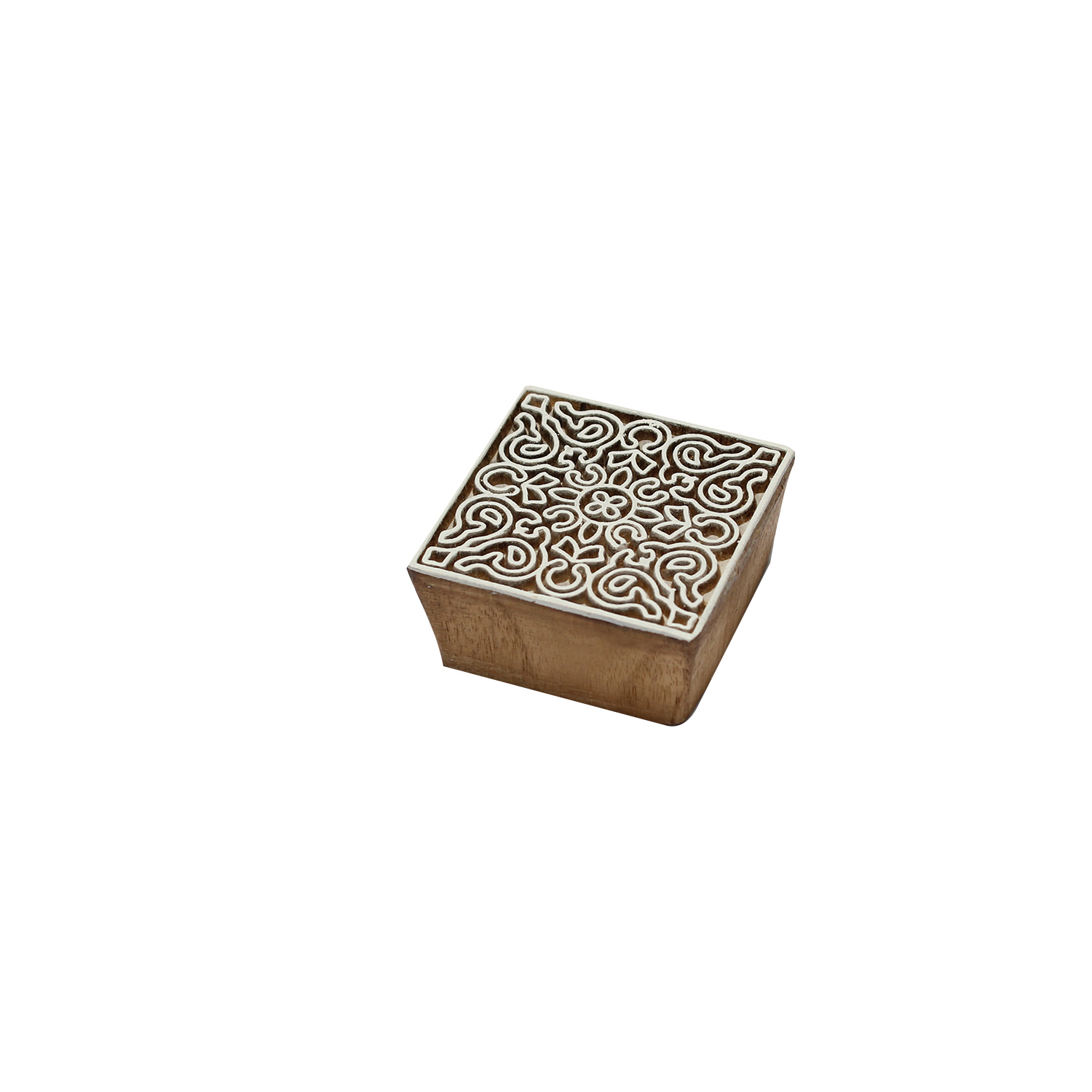 Silkrute Trendy Design Square Wooden Block Stamp | Craft Material | Henna Tatoo | DIY Craft Pack of 1