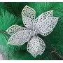 Christmas Vibes Set of 6 Artificial Silver Glitter Poinsettia Christmas Flowers for Xmas Tree Floral Ornaments Wreath Decor Christmas Xmas Party Decoration DIY Christmas Craft
