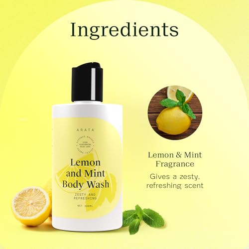Arata Lemon and Mint Body Wash for Men & Women - 300ml | Refreshing & Zesty Fragrance | Gently Cleanses & Moisturizes | For All Skin Types