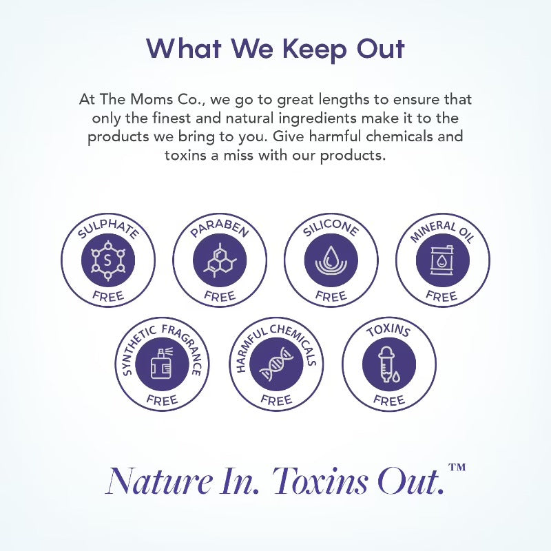 The Moms Co Natural Body Wash 200ml Our Natural Body Wash is a toxin-free combination of coconut-based mild cleansers and natural moisturizers that help your skin restore its natural balance.Our best body wash for dry skin with coconut-based cleansers that clean without drying the skinAlso works as the best body wash for sensitive and dry skinRefreshing orange and mint essential oil fragranceThis pregnancy wash has essential oils that also help with morning sickness and lift your spirits with its soothing fresh fragrance.Our Natural Body Wash is a toxin-free combination of coconut-based mild cleansers and natural moisturizers that help your skin restore its natural balance and essential oils that help with morning sickness and give your spirits a lift.What's InGentle cleansing with coconut-based cleansersHelps ease morning sickness with ginger essential oilProvides enhanced moisturizing with naturally occurring Pro-Vitamin B5Helps skin restore its natural moistureLifts your mood with refreshing orange essential oilWhat's OutMade without Mineral Oil, Sulphates (SLS, SLES), Parabens, DEA/TEA, Phenoxyethanol, Synthetic Fragrances, PEGs, and many other potentially harmful chemicalsAttention:Avoid contact with eyes.For external use only. Store in a cool & dry place.Keep out of reach of children.Co