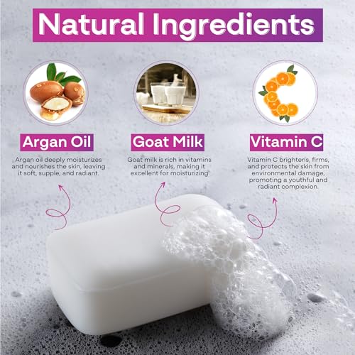 VCare Goat Milk Soap For Women & Men with Vitamin C Argan Oil for Deep Exfoliation and provides hydration | Sulfate & Paraben Free Bathing Soap Bar - 75 gms (Pack of 3)
