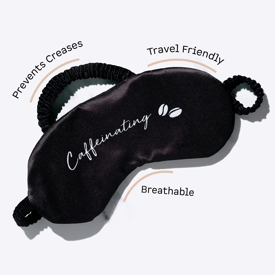 mcaffeine Caffeinating Sleeping Eye Mask Breathable Lightweight & Ultra-Comfortable Gender Neutral & Travel Friendly Made Of Pure Mulberry Silk - Black