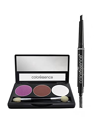 COLORESSENCE Satin Eye Shades Pearl Pigment Smooth Formula Eyeshadow Makeup Palatte, Amethyst - With FREE Eyebrow Styler 2 In 1 (Black)