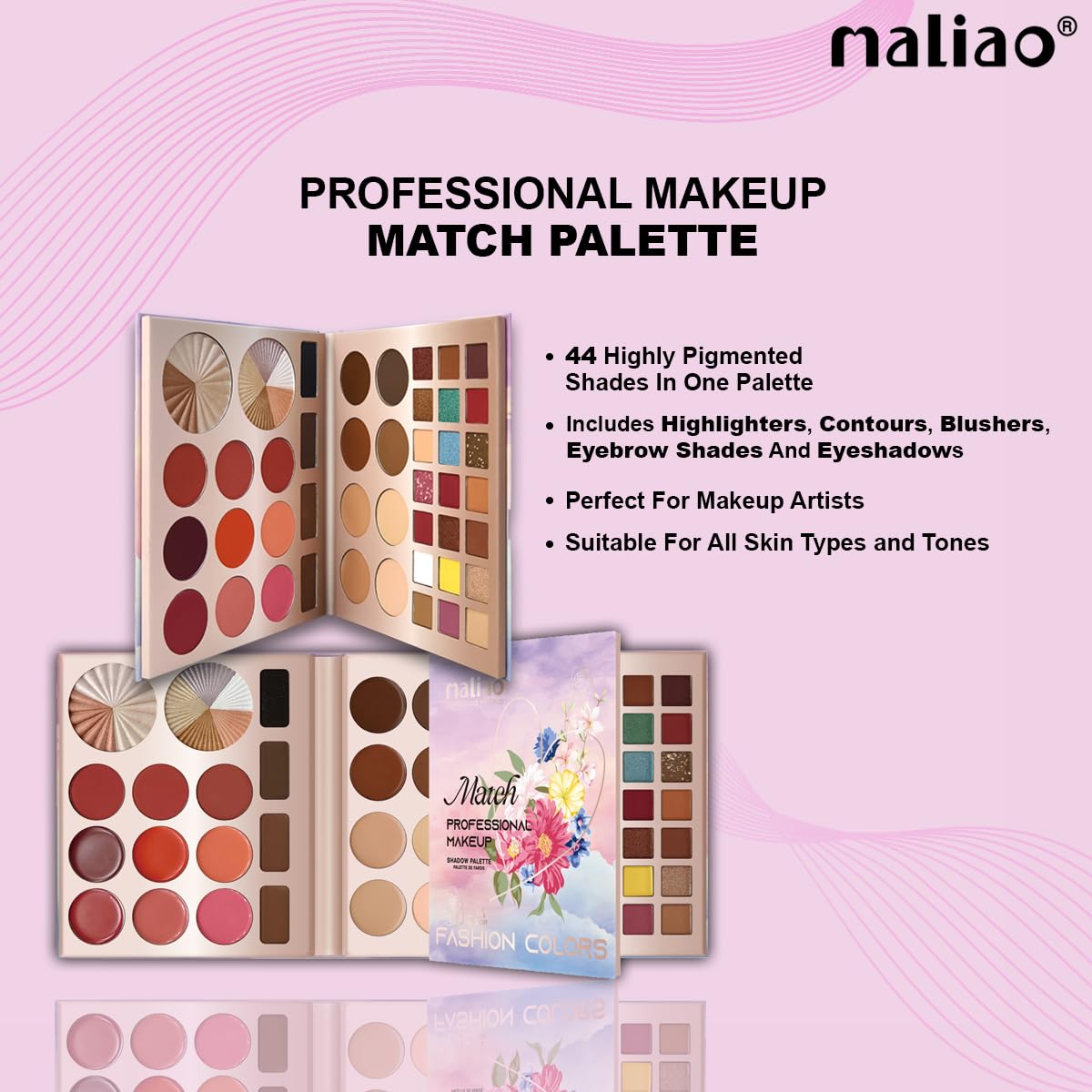 Elevate your makeup game with the Maliao Shadow Palette. This versatile palette features 44 shades designed for highlighting contouring blushing eyebrow defining and eyeshadow application. Whether you are creating a natural daytime look or a bold dramatic effect this all-in-one palette has got you covered. The Maliao Shadow Palette is highly pigmented providing rich and vibrant colors that deliver intense color payoff and a long-lasting finish. The blendable and buildable formula allows for seamless transitions between shades giving you the flexibility to create a variety of looks with ease. Packaged in a sleek compact case this palette is travel-friendly making it perfect for on-the-go touch-ups. Simplify your beauty routine with this multi-functional palette that brings all your makeup essentials together in one convenient place.