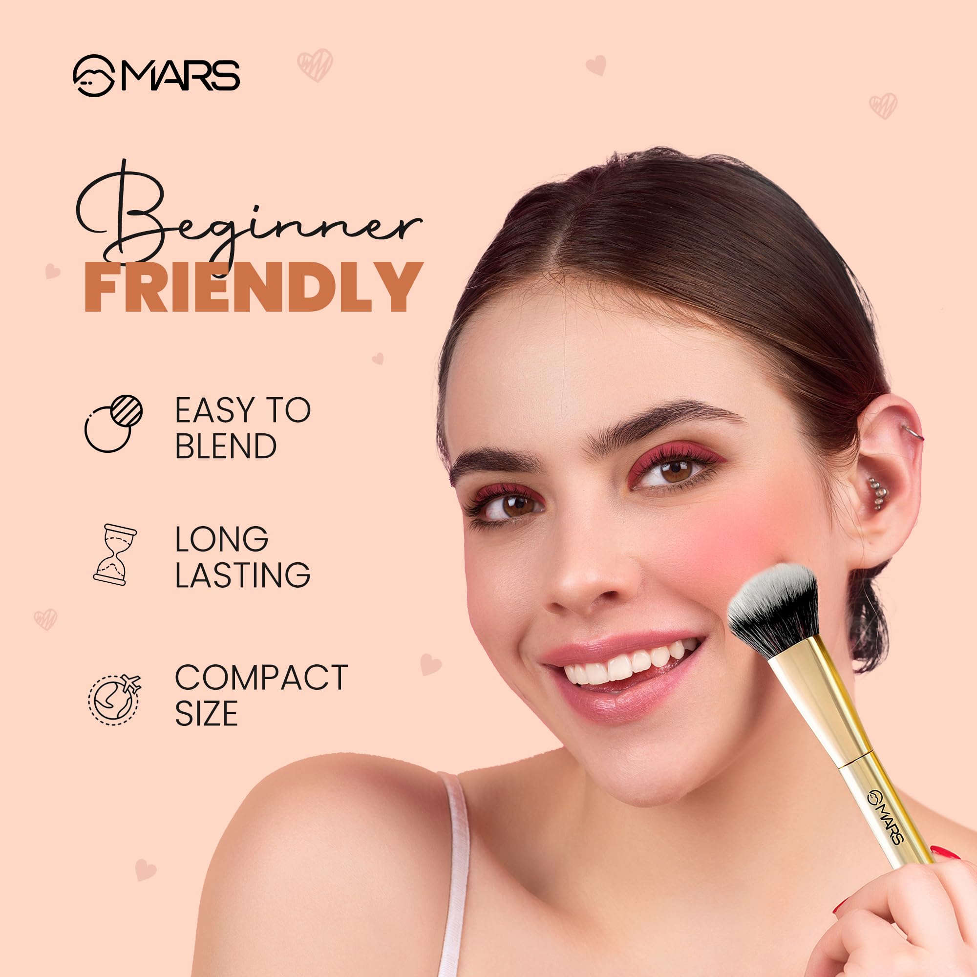 MARS Little 3 in 1 Blush Palette is a versatile makeup essential for all occasions. The palette includes 4 highly pigmented blushes 1 radiant highlighter and 1 shimmery eyeshadow all in one convenient compact. The colors are easy to blend and build ensuring a long-lasting flawless finish. This beginner-friendly palette is perfect for anyone looking for an all-in-one makeup solution and its compact size makes it easy to carry and use on the go.
