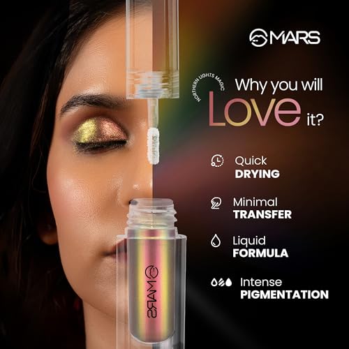 • DUAL-TONE SHADES: The MARS Northern Lights Liquid Eye Shadow features dual-tone shades creating a mesmerizing and dynamic appearance on the eyelids with a captivating duo-chrome effect.