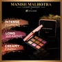 Soirée is a palette of earthy mattes copper foil and metallic nudes. Top row: L to R: Metallic champagne Metallic Champagne gold Shimmer antique brown Middle row: L to R: Soft metallic pink Copper foil Matte caramel brown Bottom row: L to R: Matte coral Metallic copper rust Matte mauve They gleam and glow sleek like liquid metal and smooth like creamâperfect companions for a night about town or a glamorous day out. The Manish Malhotra 9 in 1 Eyeshadow Palette by MyGlamm delivers powerful statement colour in three luxurious finishesâfoil metallic and matte to help you create everything from a smouldering smoky eye to an attention-grabbing splash of colour and everything in between. Powder-free creamy and long-lasting one swipe is all it takes to get ready. Eye candy quite literally.