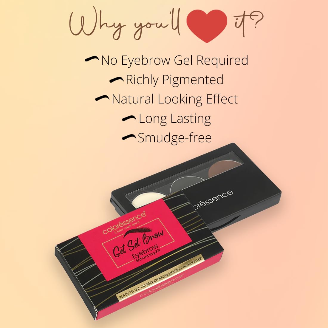 Let your bold & dramatic eyes do the talking- with the Get Set Brow Eyebrow Palette. A 3 in 1 multifunction brow palette to conceal contour and highlight the eyes. It has two different creamy shades to fill the brows with spoolie at one side of the brush. Moreover the highlighter accentuates the eye look. In addition the shades are completely easy to blend giving your eyes a crease-free finish for long hours. The smooth powder texture gives a natural & sculpted eye appearance. The Get Set Brow Eyebrow Palette is absolutely lightweight & compact which makes it easy to carry. So hereâs your key to easy-peasy eye look whenever & whichever way you want.