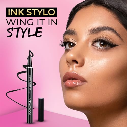 COLORESSENCE Ink Stylo Matte Eyeliner Sketch Pen Style Waterproof Long Lasting Formula, Black