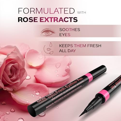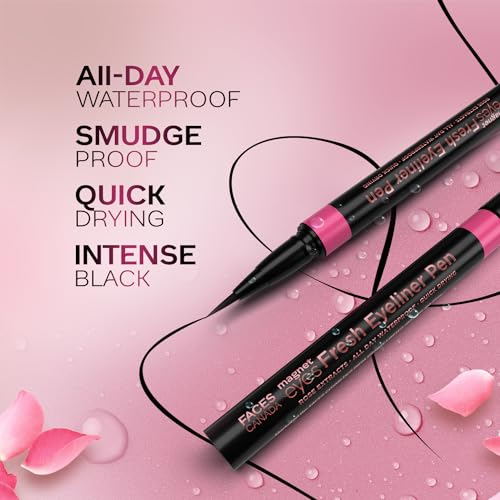 FACES CANADA Magneteyes Fresh Eyeliner Pen - Black, 1ml | All - Day Waterproof & Smudgeproof | Long-Lasting | Intense Color Payoff | Quick Drying & One Stroke Application | Rose Extract
