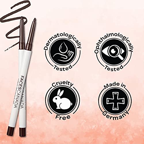 #Forallyourfaces a high-impact water-proof eye pencil Faces Canada twist eye kajal liner comes in 4 matte and metallic shades for the effortless eye look. Dual application on the waterline and the upper lid this smudge-proof eyeliner won't budge until you want it to. The twist eye kajal liner's Transfer-proof and fade-proof formula keeps the intense colour locked down for 24 hours. A smart combination of carnauba wax and ultra soft polymers render it a soft consistency to help you achieve that look you've been aiming for. Packed into a convenient retractable format it glides on in a smooth flick of the wrist no dragging pulling or having to retrace the steps.