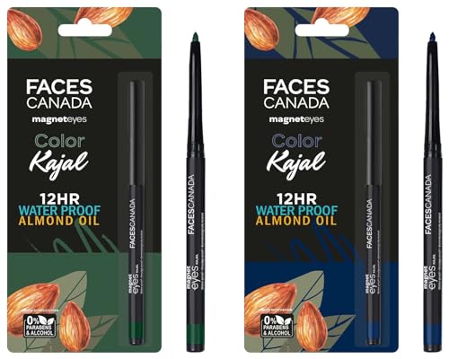 FACESCANADA Magneteyes Color Pencil Kajal - Green Appreciation 02 & Magneteyes Color Kajal - Blue Motivation 01, Matte Finish