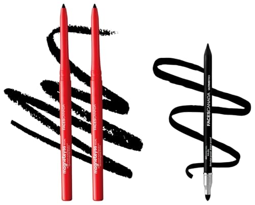 FACESCANADA Ultime Pro Intense Gel Kajal With Smudger & Sharpener - Black1.2 G|24 Hr Long Stay|Waterproof & Smudgeproof|One Swipe Smooth Application|3-In-1 KajalEyelinerSmokey EyeshadowMatteLet your eyes speak for you with the FACES Ultime Pro intense gel kajal. This kajal gives you a super-creamy application. The intense pigments allow you to define your eyes beautifully and give you lasting coverage.FACESCANADA Magneteyes Metallic Kajal Pencil - Black0.35G (Pack Of 2)|24 Hr Long Stay|One Stroke Smooth Glide|WaterproofSmudgeproof&Fadeproof|Deep Matte Finish|Enriched With Almond Oil & Vitamin EFaces magnet eyes kajal (0. 35g) - pack of 2 Skin friendly composition used and it is long-lasting.