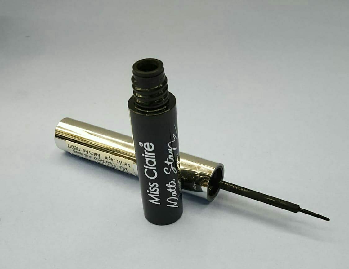 Miss Claire eyeliner provides a jet black smooth matte finish. I have edited the review after using this for 2 months. The eyeliner tends to dry up and crack and doesnt last long. Its uncertain as to whether new stock was delivered or old. Pls check the dates of manufacture and expiry after receiving the item.