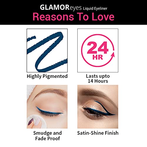 Well hello glam eyes! A bold release that packs a punch of stunning color in just one swipe Nykaaâs Glamoreyes Liquid Eyeliner is all you need to get the most fabulous eye look on. What's great about this product is its melt crack and run resistant properties. This refined liner glides perfectly across the lash line for a gorgeous fluid application leaving you looking super sensational! Let eyes that deeper than the ocean! Nykaa Glamoreyes Liquid Eyeliner in Chaotic Calypso is a gorgeous deep blue shade which is as stunning as its name.