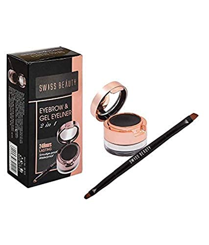 Swiss Beauty Waterproof Eyebrow & Gel Eyeliner 2 In 1 with Brush Semi-Matte Finish Smudge proof Gel Eyeliner and Eyebrow Definer Pencil Shade- Black 7gThis eyebrow and gel eyeliner has a rich and creamy water resistant formula that glides on smooth without smearing or smudging for long lasting all day wear. It comes with a professional fine eyeliner brush that expertly defines eyes to create texture so it spreads evenly. A must-have for any beauty lover for a classic line. The formula goes on smooth with deeply saturated colour that lasts all day. Its quick drying and doesn't flake.Swiss Beauty Eyebrow Palette with Wax Cream |Travel-friendly Eyebrow Palette with Blendable colors for Face makeup | Shade-01 5gm|Swiss Beauty Eyebrow Kit shades are all very blendable to match your eyebrow color easily and the applicator included is all you need for a perfect brow. Use the Brow Wax to fix your brows in place whilst smoothing and creating a solid look and base for the powder to adhere to.