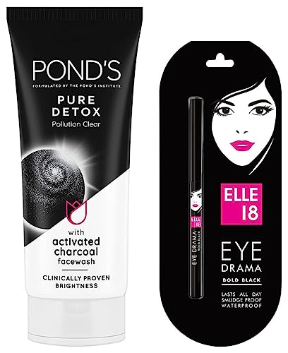 HomeBeautyEyesKajalElle 18 Eye Drama Kajal Pencil, Bold Black, 0.35G And Pond's Pure White Anti Pollution With Activated Charcoal Facewash, 100G - Matte Finish