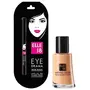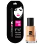 Elle 18 Eye Drama Kajal, Super Black- Smudge-Proof, Waterproof, 0.35 G & Lasting Glow Liquid Foundation, 03 Shell, Shell, 27 Ml, Matte Finish