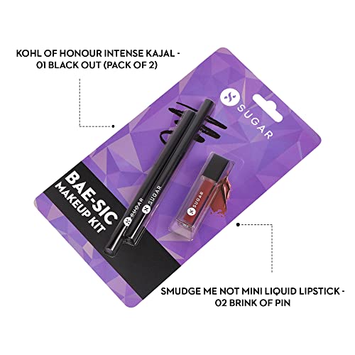 Put on a show with vibrant pink lip and intense kohled eyes with SUGAR's Everyday Makeup Kit. This set has our bestselling Smudge Me Not Liquid Mini Lipstick enriched with vitamin E to keep your lips smooth and nourished. The super pigmented formula lasts up to 12 hours and is totally transfer-proof. This set also has our bestselling Kohl Of Honour Intense Kajal in a pack of 2. Use these smudge and transfer-resistant kajal pencils to try endless eye makeup looks!