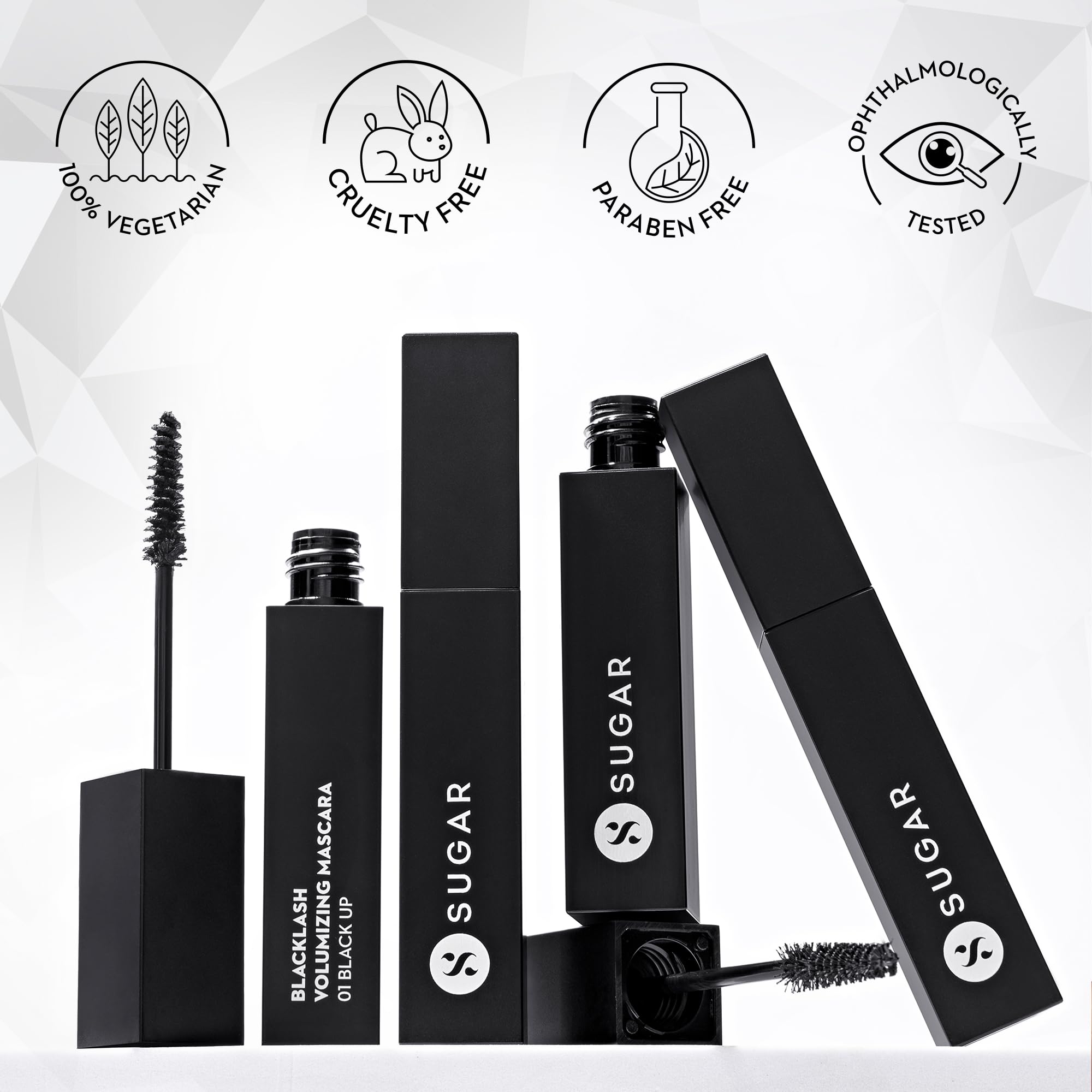 Your lashes like drama! Get voluminous lengthy and curly wispies in just one stroke with our Blacklash Volumizing Mascara. Packed with the richest pigment this gives your lashes a fanned-out' effect in just one swipe. This mascara won't clump flake or smudge as it coats each lash evenly to give you high-impact volume and length. The water-resistant formula does not budge even on the most humid days which makes it perfect for the Indian climate. If you need more reasons to stash it we have it! The vegetarian non-irritating formula is infused with lash-conditioning carnauba wax and rice wax and removes easily without tugging or pulling. Now make everyone flutter with just one wink with our volumizing mascara!