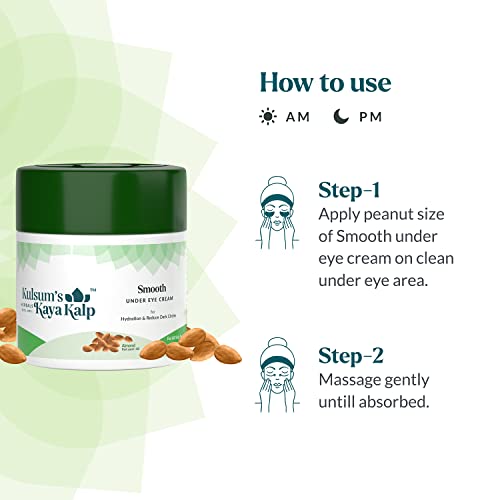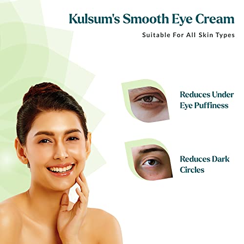 To help reduce under-eye puffiness and lighten the under-eye area Kulsum's Kaya Kalp Herbals Smooth under-eye cream is packed with mace spice extract chironji almond oil sunflower oil and berberis aristata. It's an under-eye cream that's all-natural cruelty-free and paraben-free. Since Ayurveda is at the heart of every Kulsum's Kaya Kalp Herbals product this under eye cream is no exception. Mace spice extract is a highly popular skincare ingredient due to its anti-bacterial and anti-inflammatory properties which help provide a youthful glow. The soothing properties help provide instant relief from irritated skin. Chironji is packed with antioxidants vitamins and minerals and functions as a good moisturising agent. Almond oil helps minimize puffiness repairs and nourishes the skin. Sunflower oil has soothing properties and leaves the skin feeling soft and supple. Apply this under eye cream for dark circles and gently massage the area to boost circulation and help in better product absorption.