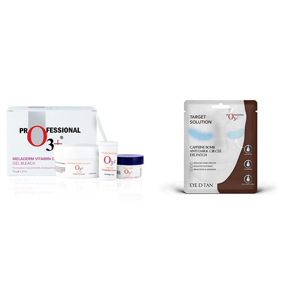 O3+ Meladerm Vitamin C Gel Bleach for Skin Whitening and Hair Lightening (96g) & O3+ Caffeine Bomb Anti Dark Circle Eye Patch & Eye D Tan (single use only) 5G Combo
