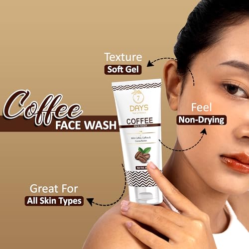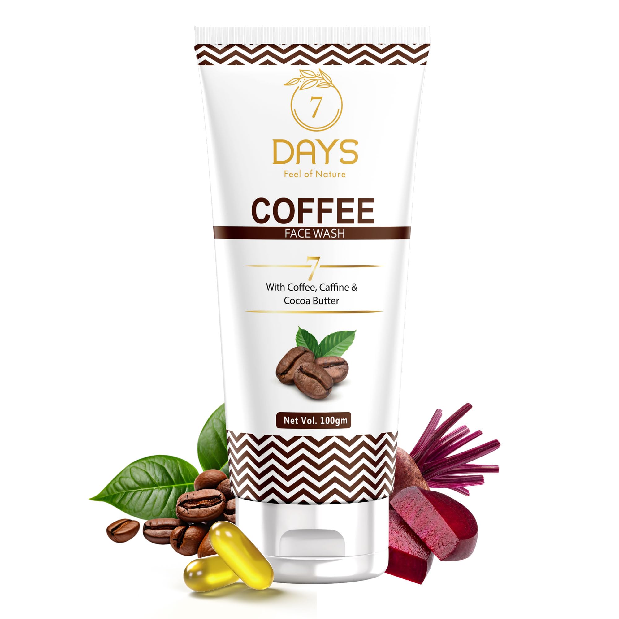 7 DAYS Coffee Face Wash for Men & Women | Daily Use Face Cleanser | Parabean, Silicon, Sulphate free | Natural & 100% Vegan - 100 ml
