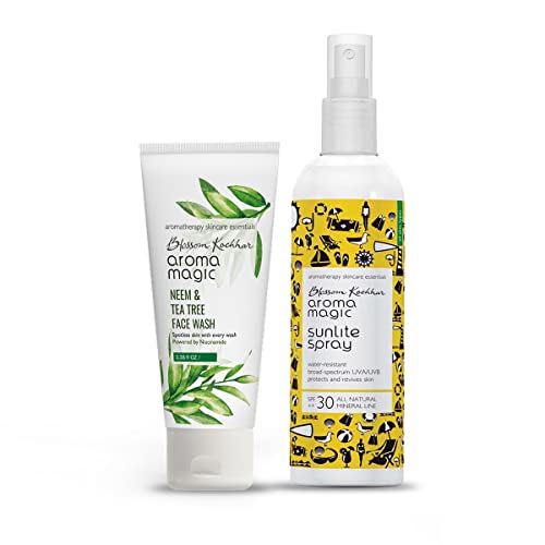 Neem & Tea Tree Face wash) I am a natural face wash to help you deep cleanse and give you bright and glowing skin. Infused with Tea Tree Oil I help to control pimples and acnes prevent blackheads and soothes skin irritation. I tighten pores and improve overall skin texture resulting in a supple and smooth skin. I am not made of harmful chemicals parabens alcohol artificial fragrance & color. Sunlite Spray My all-mineral water-resistant formula creates a physical barrier between you and the sun. I am non greasy skin friendly and enriched with Hempseed Rosemary and Macadamia oils. They provide natural sun safety Vitamins B5 C and E prevent visible signs of ageing. Notes of Lavender Chamomile and Helichrysum essential oils revive and protect your skin. The non-nano Zinc Oxide in me is a mineral reflector found in nature that scatters harmful rays. Moringa extracts rejuvenate the skin and provide smart sun protection. I am not made of harmful chemicals parabens alcohol artificial fragrance & color