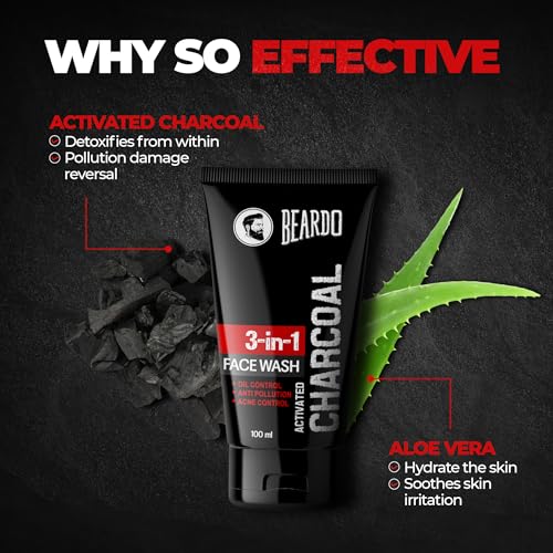 Beardo Activated Charcoal Face Wash, 100ml and BEARDO Ultraglow Face Cream SPF 30 for Men, 60g Combo