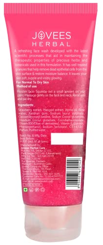 HomeBeautyFace CareCleansersFace WashJovees Herbal Strawberry Face Wash For Hydrating & Glowing Skin with Strawberry Ext. | Gentle Cleanser For Brightens Skin, Removes Pigmentation | For Normal to Dry Skin Types - 120ML