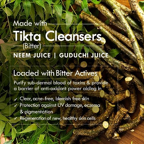 • Ingredients: Neem: Anti-Bacterial Properties Fights Skin Infections & Exfoliating Properties. Guduchi:- Helps in Skin DetoxificationSupports Skin HealingProvides Hydration and MoisturizationHelps Manage Acne. Tea Tree:- Acne-Fighting PropertiesSoothing fo