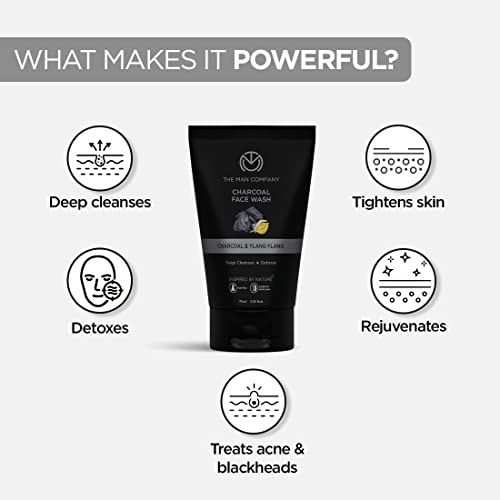 The Man Company Charcoal Face Wash (Buy 1 Get 1 Free) -75ml Each | Ylang Ylang | Anti Pollution, Acne Oil Control | Deep Cleansing | Blackheads Removal | All Skin Types