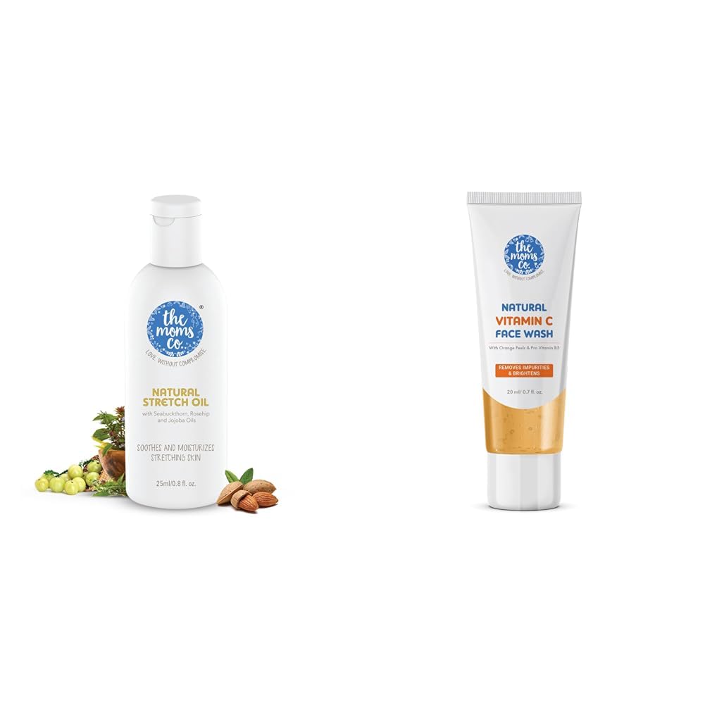 The Moms Co. Natural Stretch Oil | Reduces stretch marks for women- 25 ml Natural Vitamin C Face Wash for Women & Men I Natural Simple Face Wash | 20 ml