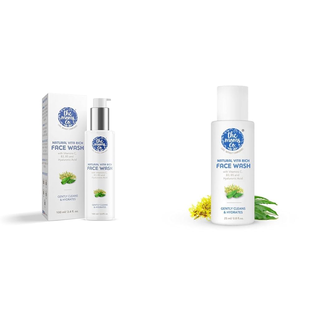 The Moms Co. Natural Vita Rich Face Wash (100ml). Natural Vita Rich Face Wash | All Skin Types | With Vitamins C B3 & B5 Neem Extract and Witch Hazel 25 ML