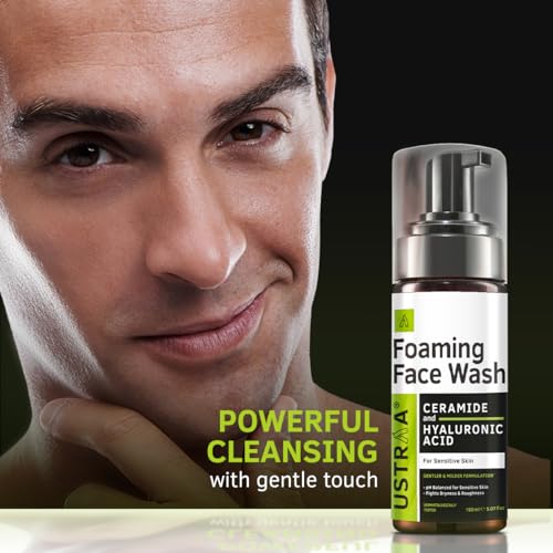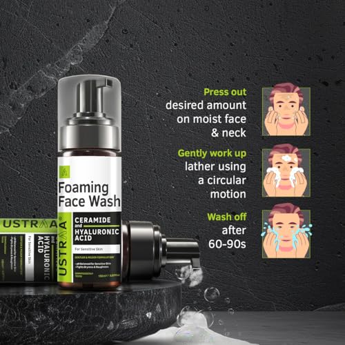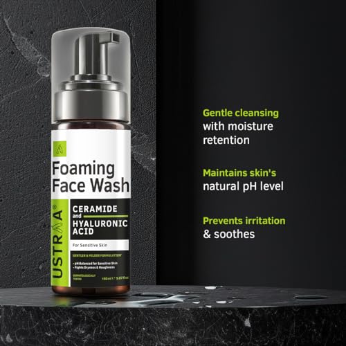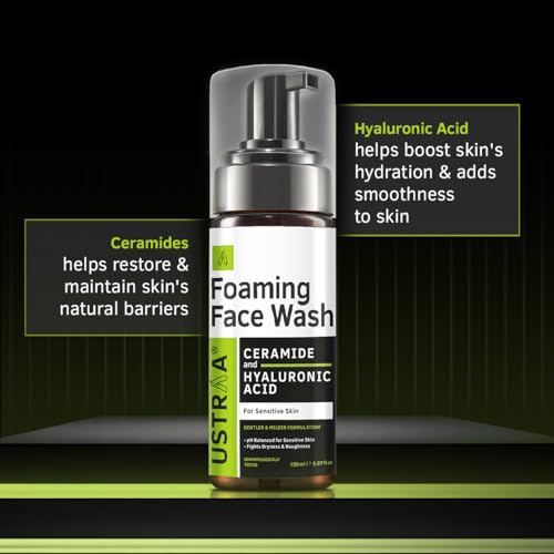 Ustraa Foaming Face Wash - 150ml - with Ceramide & Hyaluronic Acid - For Sensitive Skin | Gentle Formulation | Keeps pH in Balance | Dermatologically Tested | NO SLS, NO PARABEN