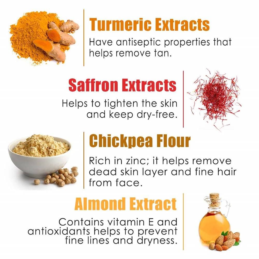 Wow Skin Science Ubtan Face Wash:100 Ml, 200 ml Ingredients: Turmeric Extracts Saffron Extracts Chickpea Flour Almond Extract Legal Disclaimer: Statements regarding dietary supplements have not been evaluated by the FDA and are not intended to diagnose, treat, cure, or prevent any disease or health condition. Note: May contain additional ingredients. The product description is for information purposes only and it is always better to consume/use products af