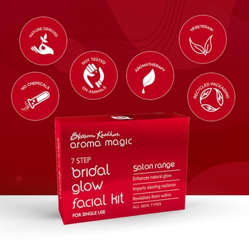 Aroma Magic 7 step Bridal Glow Facial Kit| Enhance Natural glow + Dazzling radiance & Revitalises | with Turmeric & Rose Extracts| All Skin type| Single Use| Pack of 1 (20g + 18ml)