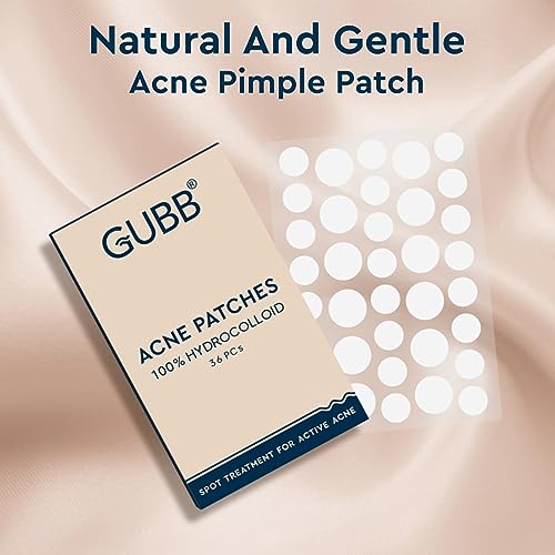 GUBB Acne Pimple Patches - 36 Pieces of Invisible Facial Stickers with 100% Hydrocolloid - Advanced Pimple Care for Face - Rapid Healing Acne Patches for Quick & Effective Blemish Reduction - Suitable for All Skin Types