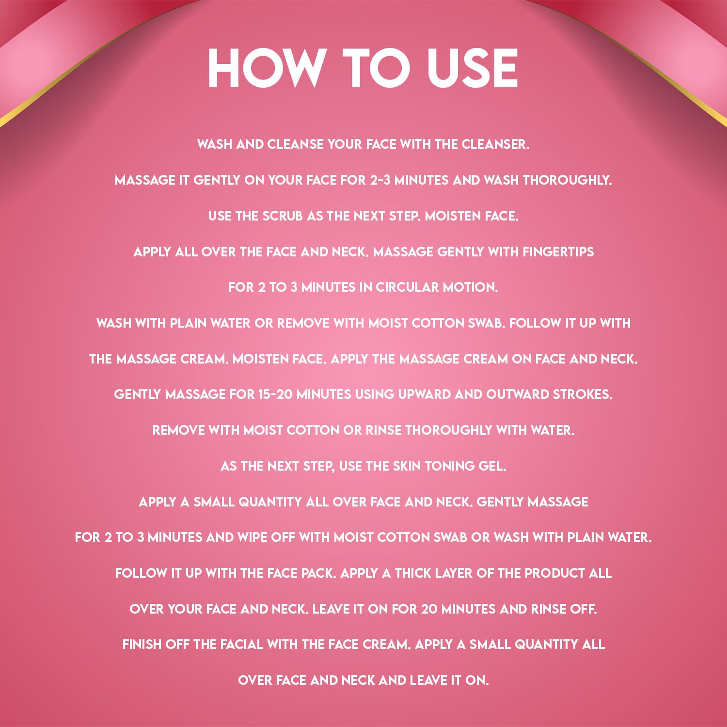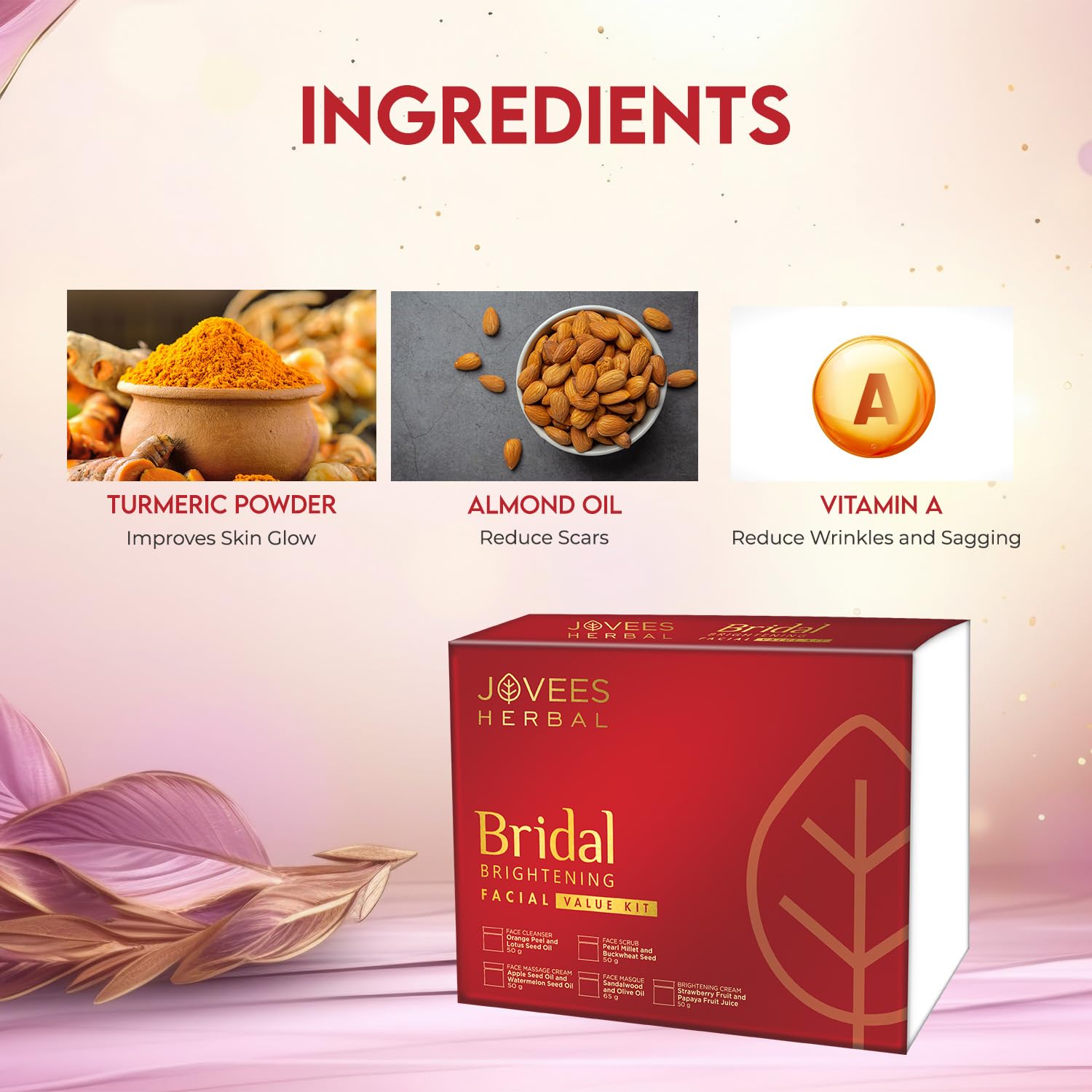 Facials are excellent for stimulating blood circulation to the skin. Jovees bridal brightening facial value kit contains five products which are to be used as per the given directions on kit. These products when used together work to deep cleanse and exfoliate your skin remove dead skin cells reduce melanin count which helps awaken the glow within you. The products aid in giving even tone and glow to your skin. This facial will help to brighten and rejuvenate your skin. Bridal brightening face cleanser bridal brightening face scrub bridal brightening face massage cream bridal brightening face masque bridal brightening cream.