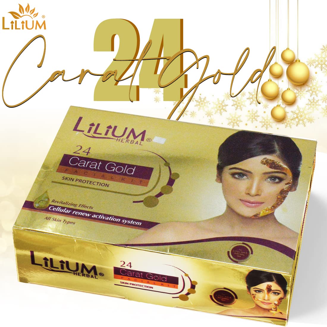 Good Choice India provides you 100% genuine & brand new product...The Lilium "24 Carat Gold Facial Kit" fortified with Actives is a complete "Do it yourself" Facial Kit that can be used at the comfort of your home. In today’s day and age exposure to Sun Pollution and Impurities in our surroundings leaves our skin dull dark and lifeless! Maintaining good skin health is the top most priority for all of us! "24 Carat Gold Facial Kit" helps tackle these skin concerns. Contains gold dust &carrot seed oil. Gold carries anti inflammatory properties it protects the skin from allergies. Gold revitalizes the skin. Carrot for all skin types (Preferably dull lusterless & tired skin). It enhances skin temperature thereby boosting blood circulation it gives gold like shine & luster to skin. Contains gold dust &carrot seed oil. Gold carries anti inflammatory properties it protects the skin from allergies. Gold revitalizes the skin. Carrot for all skin types (Preferably dull lusterless & tired skin). It enhances skin temperature thereby boosting blood circulation it gives gold like shine & luster to skin. Enriched with the concoction of Activated with natural ingredients that are fortified with Actives delivers maximum efficacy with skin rejuvenation benefits for a purified balanced and glowing skin!