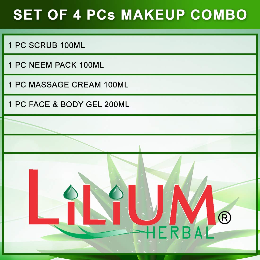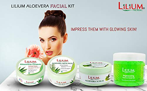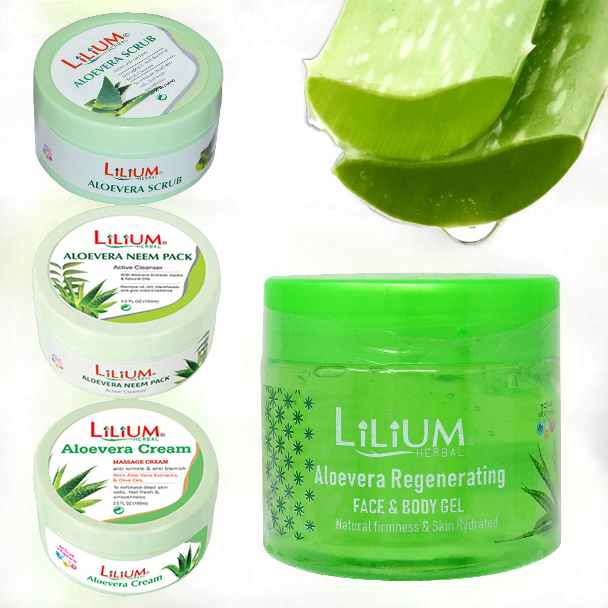 Lilium Aloe Vera Facial Kit (Scrub Pack Cream 100g each & Gel 200g)
