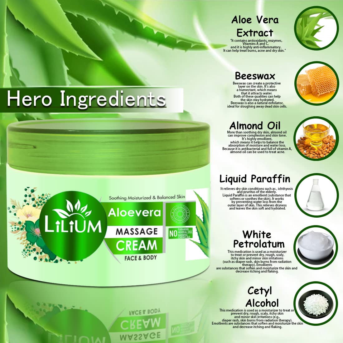 Step 2 and Benefits: Aloevera massage cream maintain the fairness glow and shine of the skin. It gives a natural lustre and youthful radiance to the skin. The use of aloevera in skin care dates back to ancient times. Ancient ayurvedic scriptures claims th