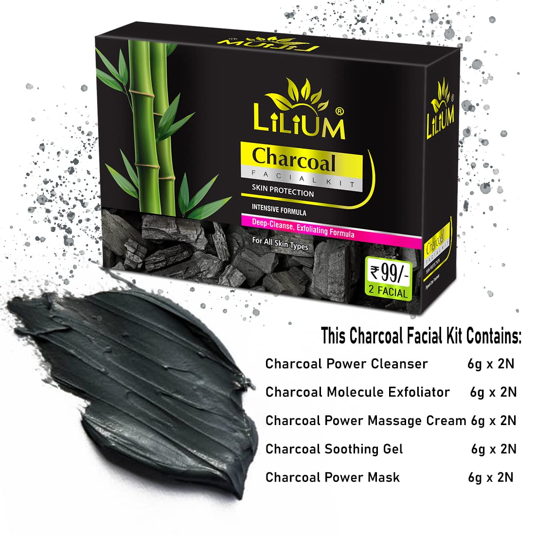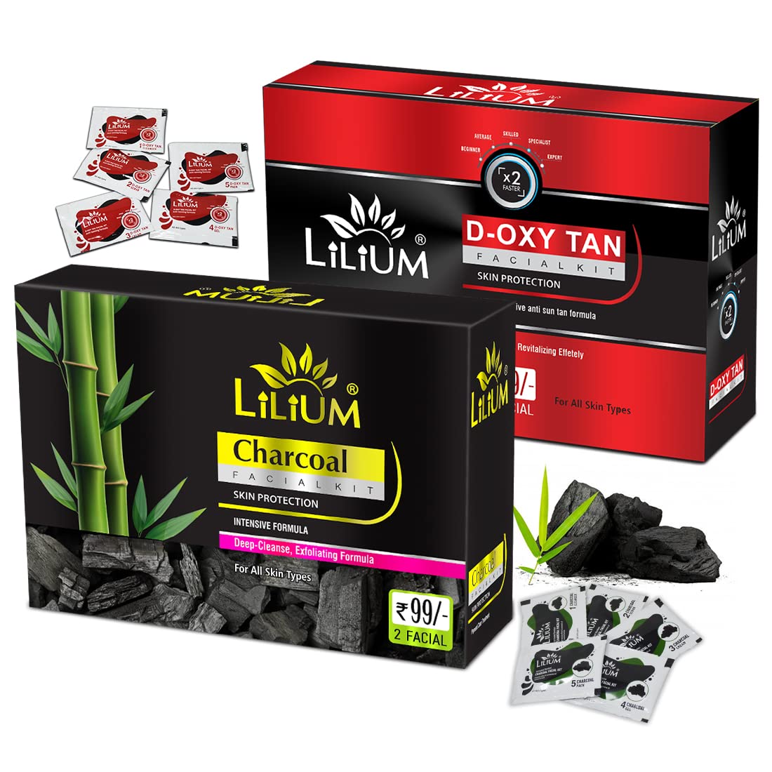Lilium Charcoal & D-Oxy Tan Facial Kit Pack of 2 Anti Sun Tan Formula Skin Expert Revitalizing Effetely 60g