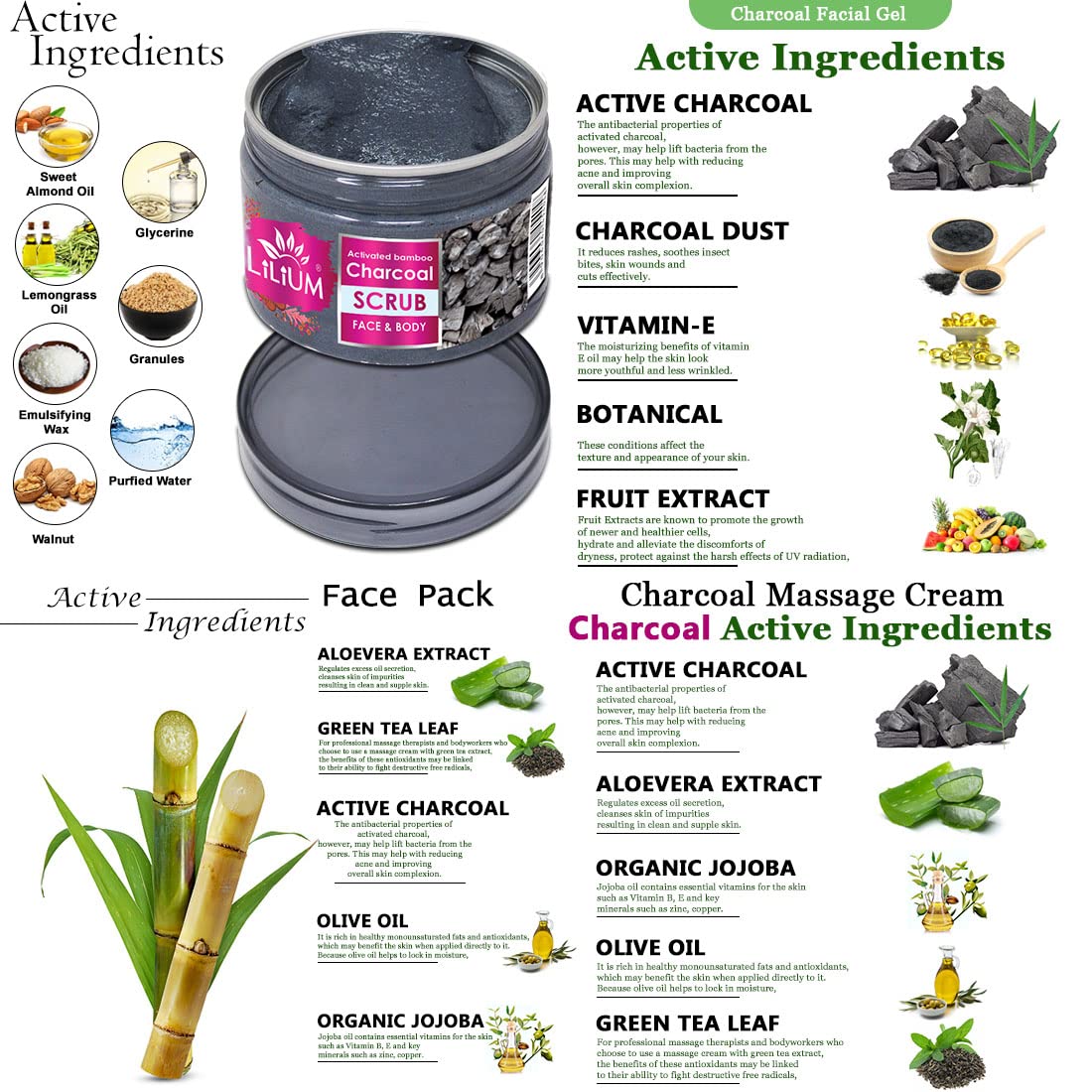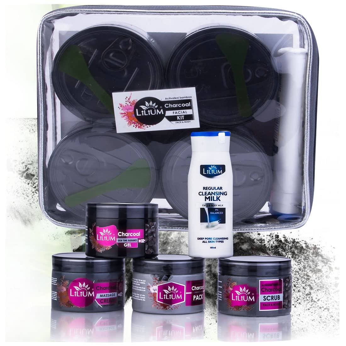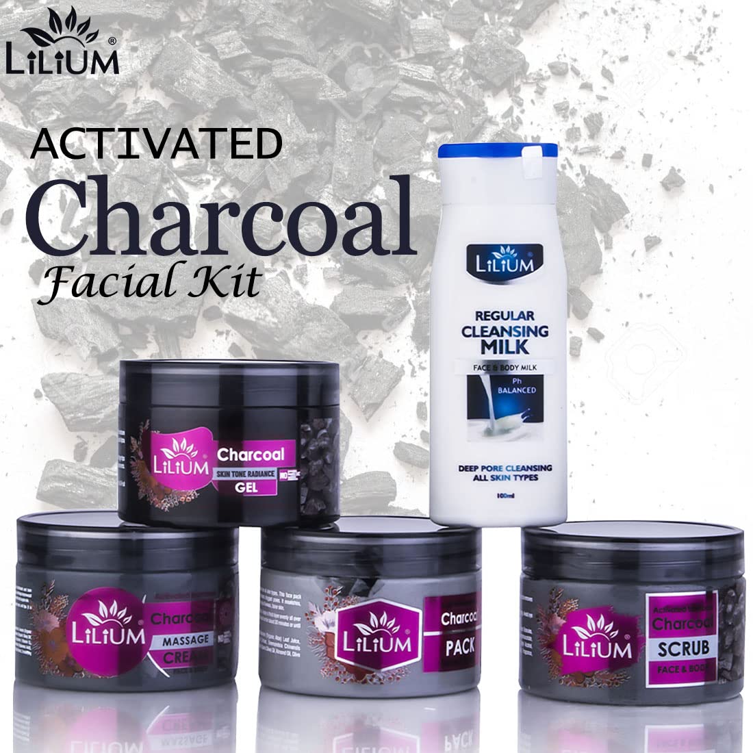 Lilium Charcoal Facial Kit 1100g | Complete Skincare Set With Power Of Detoxification & Rejuvenation | Deep Cleansing & Pore Minimization | For Women & Men | 100% Vegan | All Skin Types