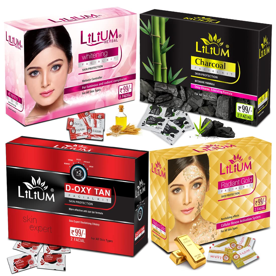 Buy this Product From The House Of Good Choice India on Amazon.in The Lilium Facial Kit" fortified with Actives is a complete "Do it yourself" Facial Kit that can be used at the comfort of your home. In today’s day and age exposure to Sun Pollution and Impurities in our surroundings leaves our skin dull dark and lifeless! Maintaining good skin health is the top most priority for all of us! This Facial Kit" helps tackle these skin concerns. Enriched with the concoction of Activated with natural ingredients that are fortified with Actives delivers maximum efficacy with skin rejuvenation benefits for a purified balanced and glowing skin! This kit is suitable for skin types.
