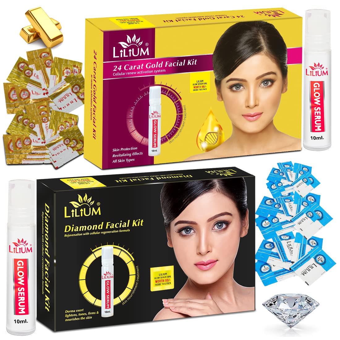 Lilium Diamond & Gold Facial kit Pack of 2 For Nourishes Skin and Cellular Renew Activation System 120g