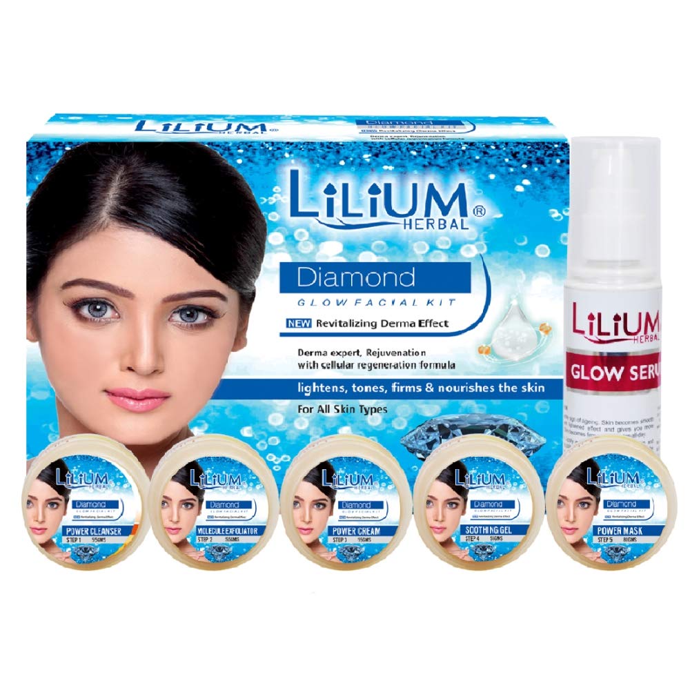 Lilium Diamond Glow New Revitalizing Derma EffectDerma ExpertRejuvenation With Cellular Regeneration Formula LightensTonesFirms & Nourishes The Skin For All Skin Types Facial Kit 350 GM with Multi function 5 in1 Massager