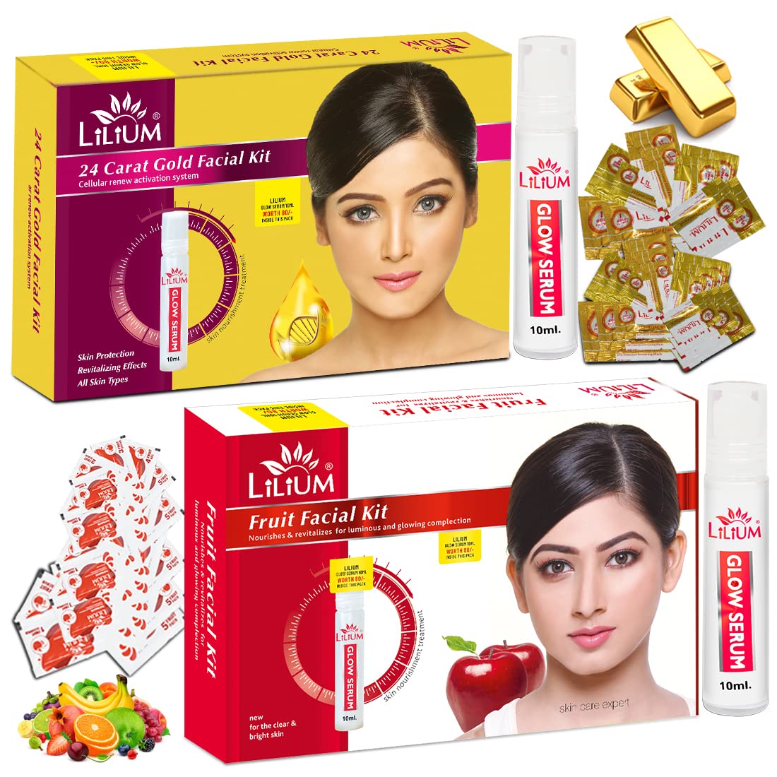 Lilium Fruit & Gold Facial Kit Pack of 2 Nourishes Revitalizer For Luminous & Cellular Renew Activation System 120g