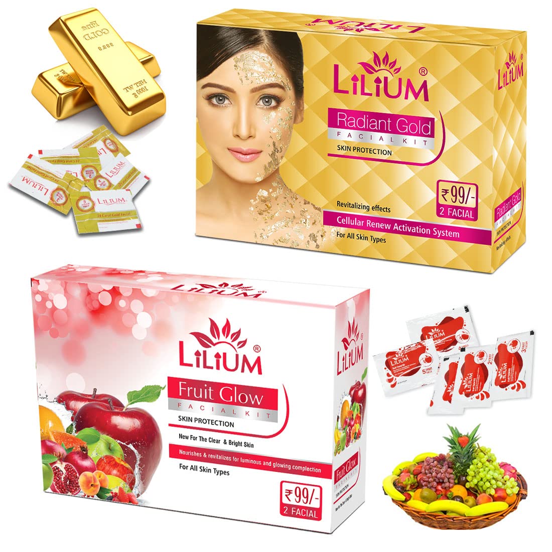 Lilium Fruit & Gold Facial Kit Pack of 2 Nourishes Revitalizer For Luminous & Cellular Renew Activation System 60g