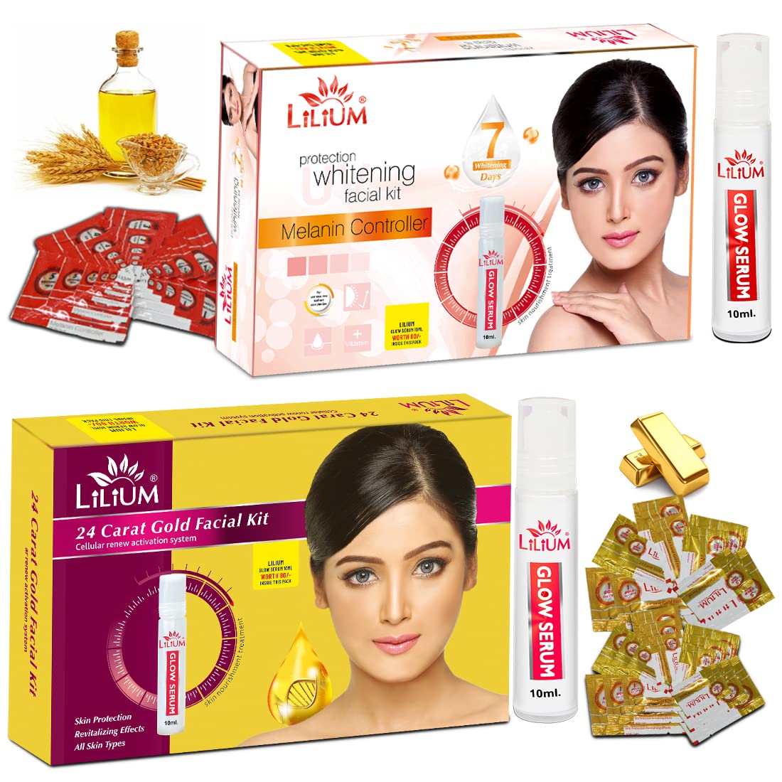 Lilium Gold & Whitening Facial Kit Pack of 2 Cellular Renew Activation System For Luminous and Radiant Complextion 120g